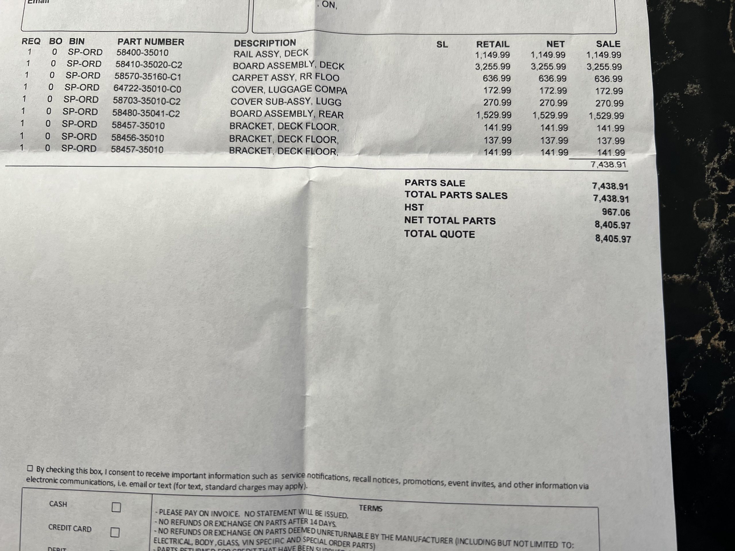 • Total OEM Toyota Cargo Slide Tray Cost: $1300-$1500